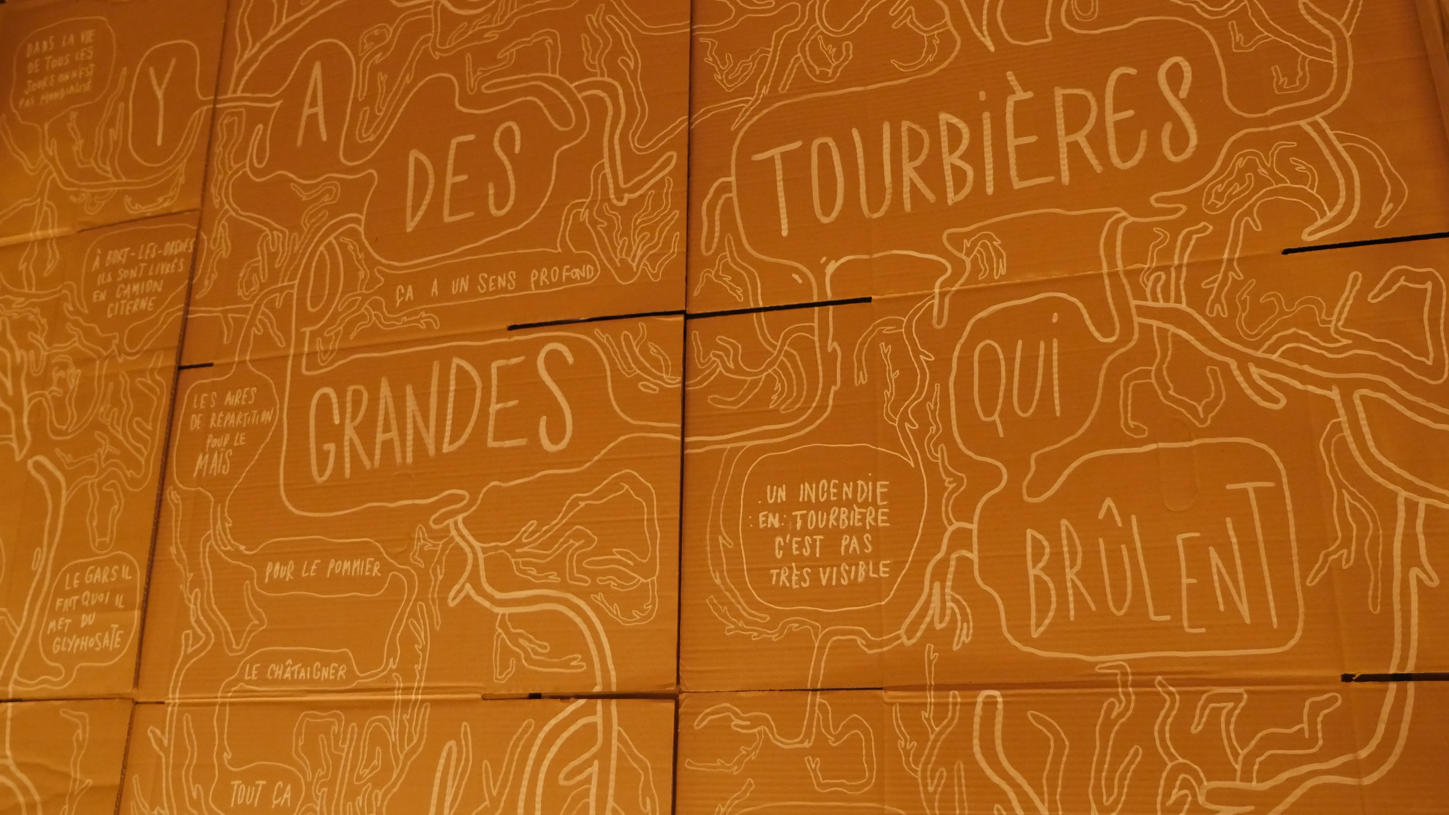 Si vous voulez recevoir la carte du sol & de l’air, seconde carte de la marche-enquête reliant Brive-la-Gaillarde à Peyrelevade, n’hésitez pas à écrire à Jérôme Farges de l’Empreinte (jerome.farges@sn-lempreinte.fr) ; pour les fresques, elles sont encore visibles sur place : n’hésitez pas à aller vous promener à Peyrelevade, vous les trouverez sur les vitres !