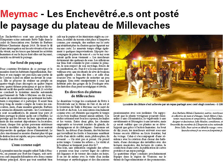 Les Enchevêtré·e·s, c’est un projet au long cours (*), artistique, culturel (et un peu sportif aussi) que Barbara Métais-Chastanier a lancé la semaine dernière entre moyenne et haute Corrèze.