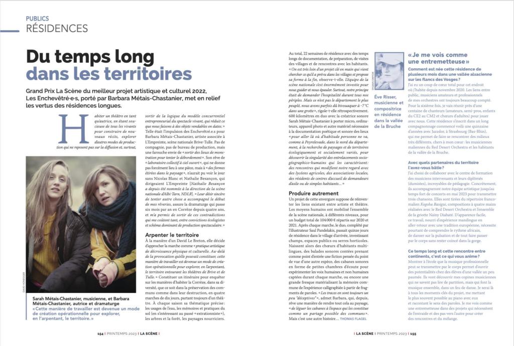 Grand Prix La Scène du meilleur projet artistique et culturel 2022, Les Enchevêtré·es porté par Barbara Métais-Chastanier, met en relief les vertus des résidences longues.